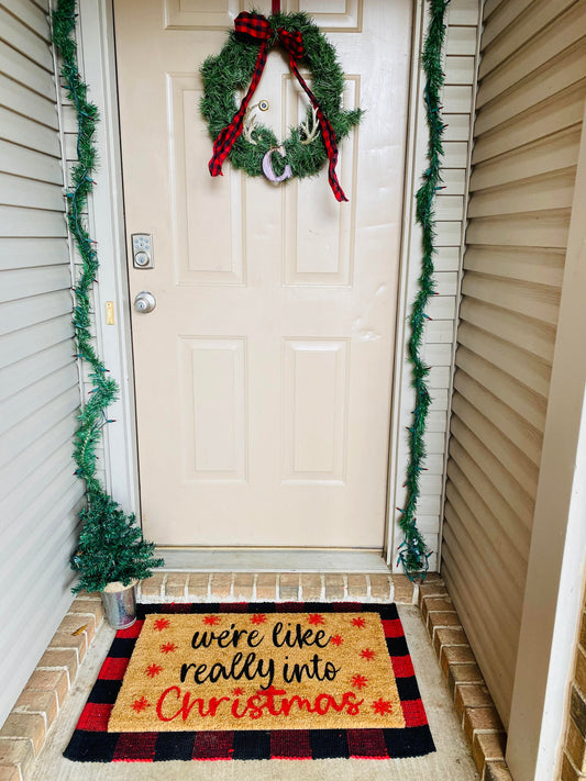 Fa la la la Larguense Coir Door Mat in Red and Green