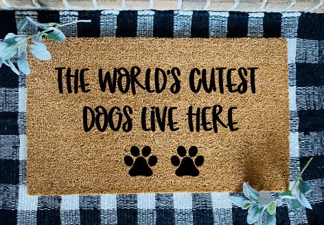 The World's Cutest Dog(s) Live Here Custom Dog Ear Outline Door Mat