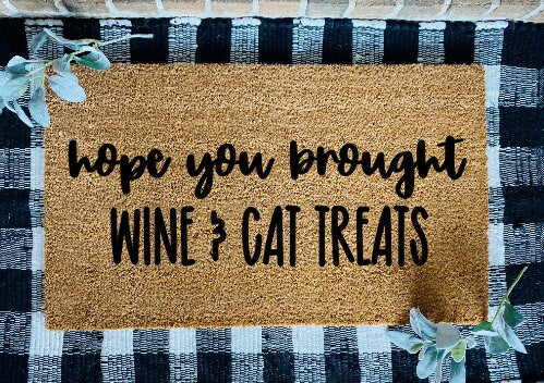 Welcome, Hope You Brought Wine and Cat Treats Door Mat