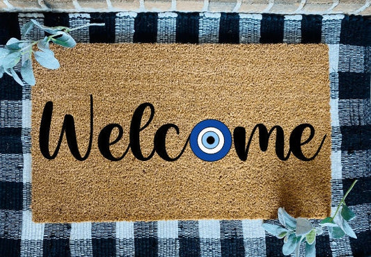 Bienvenido a nuestro hogar tapete de puerta personalizado